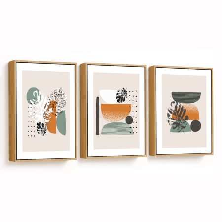 Set of 3 Geometric Figurative Abstract - Circular Wooden Frames