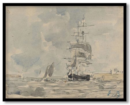 Seascape with Sailing Vessel by Eugène Boudin (c. 1875)
