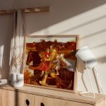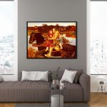 - Material: You can choose between different print mediums (Glicee paper or Canvas) and 40+ framing options that you can see on the website. Any order above 18x24 inches is processed in pinewood since synthetic wood is not able to bear its load. Wherever applicable, acrylic glass is used instead of normal glass, for its ease of handling and recyclability.