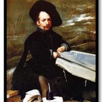 A dwarf holding a tome in lap by Diego Velazquez (1645)