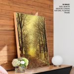 - Material: You can choose between different print mediums (Glicee paper or Canvas) and 40+ framing options that you can see on the website. Any order above 18x24 inches is processed in pinewood since synthetic wood is not able to bear its load. Wherever applicable, acrylic glass is used instead of normal glass, for its ease of handling and recyclability.