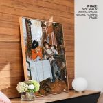 - Material: You can choose between different print mediums (Glicee paper or Canvas) and 40+ framing options that you can see on the website. Any order above 18x24 inches is processed in pinewood since synthetic wood is not able to bear its load. Wherever applicable, acrylic glass is used instead of normal glass, for its ease of handling and recyclability.