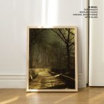 Framed Art | A moonlit lane with two lovers a gate by John Atkinson Grimshaw (1874) | 50+ Frame Styles • Museum Quality • Made in India