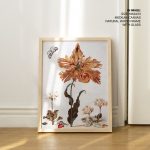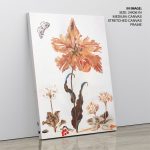 Wall Art | A parrot tulip, auriculas, and red with a magpie moth, its caterpillarpupa by Maria Sibylla Merian (1705) | Small to XXXL Sizes • 50+ Framing Styles • Non Toxic
