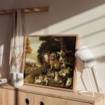 You can wipe it off with microfiber cloth or damp cloth with water and soft soap (shampoo). If your frame has canvas without glass, we recommend simply dust using a dry soft and fine brush. Refrain from using wood polish or cleaning sprays since this could potentially create moisture and possibly damage the artwork.