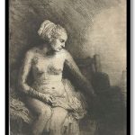 A woman at the bath with hat beside her by Rembrandt (1658)