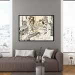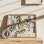 A woman in shinto shrine has a stick with A lot of paper leaves by Katsushika Hokusai (Unknown) - Wall Art - 10+ Sizes, 50+ Frames, Museum Quality - BestOfBharat