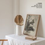 - Material: You can choose between different print mediums (Glicee paper or Canvas) and 40+ framing options that you can see on the website. Any order above 18x24 inches is processed in pinewood since synthetic wood is not able to bear its load. Wherever applicable, acrylic glass is used instead of normal glass, for its ease of handling and recyclability.
