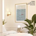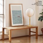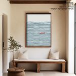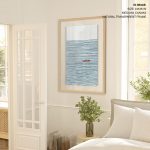 Framed Art | Abstract blue line drawing ocean boat landscape | 50+ Frame Styles • Museum Quality • Made in India