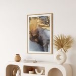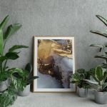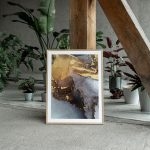 Framed Art | Abstract golden stain fluid ink painting | 50+ Frame Styles • Museum Quality • Made in India