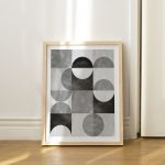 Wall Decor | Abstract grayscale geometrical figures | Custom Size & Frame • Ready to Hang • Made in India • Eco-Friendly