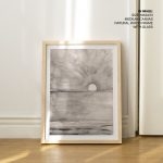 Wall Art | Abstract grayscale hand drawing sea and sunset | Small to XXXL Sizes • 50+ Framing Styles • Non Toxic