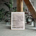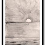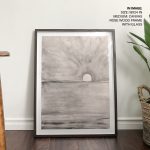 Wall Art | Abstract grayscale hand drawing sea and sunset | Small to XXXL Sizes • 50+ Framing Styles • Non Toxic