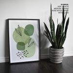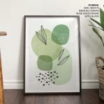 Wall Decor | Abstract green spots line drawing herbs leaf | Custom Size & Frame • Ready to Hang • Made in India • Eco-Friendly