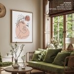 Wall Decor | Abstract line drawing floral face figure #10 | Custom Size & Frame • Ready to Hang • Made in India • Eco-Friendly