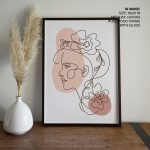 Abstract line drawing floral face figure #11 - Wall Art - 10+ Sizes, 50+ Frames, Museum Quality - BestOfBharat