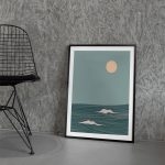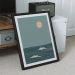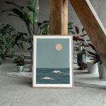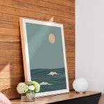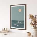 Wall Art | Abstract line drawing ocean sun seascape | Small to XXXL Sizes • 50+ Framing Styles • Non Toxic
