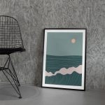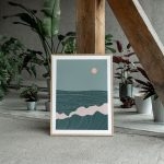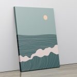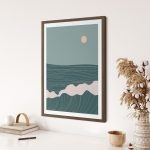 Wall Decor | Abstract line drawing silhouette ocean sun seascape | Custom Size & Frame • Ready to Hang • Made in India • Eco-Friendly