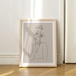Framed Art | Abstract line drawing woman flowers human figures | 50+ Frame Styles • Museum Quality • Made in India