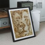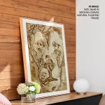 - Material: You can choose between different print mediums (Glicee paper or Canvas) and 40+ framing options that you can see on the website. Any order above 18x24 inches is processed in pinewood since synthetic wood is not able to bear its load. Wherever applicable, acrylic glass is used instead of normal glass, for its ease of handling and recyclability.