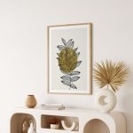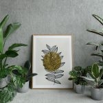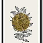 Wall Art | Abstract minimalistic golden sun line drawing botanical | Small to XXXL Sizes • 50+ Framing Styles • Non Toxic