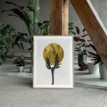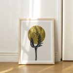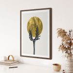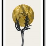 Abstract minimalistic golden sun line drawing rose #541 - Wall Art - 10+ Sizes, 50+ Frames, Museum Quality - BestOfBharat