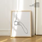 Abstract minimalistic line drawing human coffee figure - Wall Art - 10+ Sizes, 50+ Frames, Museum Quality - BestOfBharat