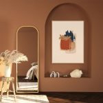 Wall Art | Abstract minimalistic red gold brushstrokes #578 | Small to XXXL Sizes • 50+ Framing Styles • Non Toxic