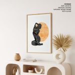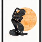 Abstract minimalistic synthesize woman figure with sun