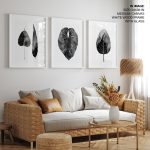 Abstract Monochrome Leaves Framed Wall Art (Set of 3), Botanical Art, Nature Art, Modern Art - Choose Size and Frame Color