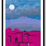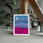 Wall Art | Abstract night pink cityscape painting | Small to XXXL Sizes • 50+ Framing Styles • Non Toxic
