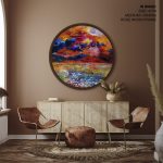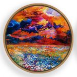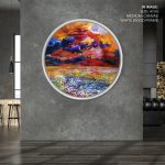 Abstract painting flower fields - Circular Wooden Frames - Wall Art - 10+ Sizes, 50+ Frames, Museum Quality - BestOfBharat