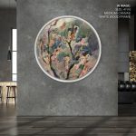 Abstract painting pink tree - Circular Wooden Frames - Wall Art - 10+ Sizes, 50+ Frames, Museum Quality - BestOfBharat