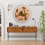 Wall Decor | Abstract seamless tropical leaf botanical - Circular Wooden Frames | Custom Size & Frame • Ready to Hang • Made in India • Eco-Friendly