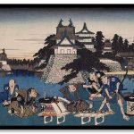 Act III: Bannai, Retainer of Moronao, with List of Presents to Appease Moronao, Watched by Honzō at Left by Utagawa Hiroshige (circa 1835-1839)