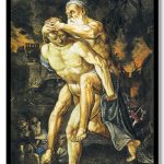 Aeneas saving anchisis from burning troy by Adam Elsheimer (1594)