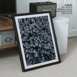 - Material: You can choose between different print mediums (Glicee paper or Canvas) and 40+ framing options that you can see on the website. Any order above 18x24 inches is processed in pinewood since synthetic wood is not able to bear its load. Wherever applicable, acrylic glass is used instead of normal glass, for its ease of handling and recyclability.