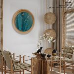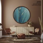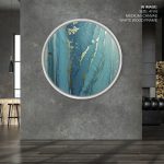Alcohol indigo gold stains abstract #202 - Circular Wooden Frames - Wall Art - 10+ Sizes, 50+ Frames, Museum Quality - BestOfBharat