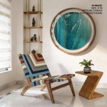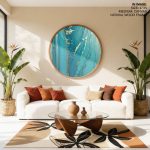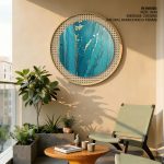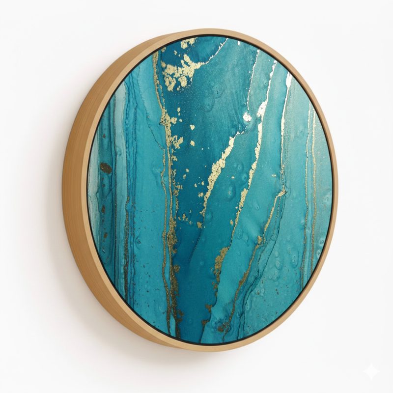 Framed Art | Alcohol indigo gold stains abstract #202 - Circular Wooden Frames | 50+ Frame Styles • Museum Quality • Made in India