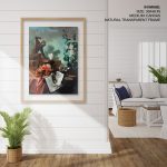 - Material: You can choose between different print mediums (Glicee paper or Canvas) and 40+ framing options that you can see on the website. Any order above 18x24 inches is processed in pinewood since synthetic wood is not able to bear its load. Wherever applicable, acrylic glass is used instead of normal glass, for its ease of handling and recyclability.