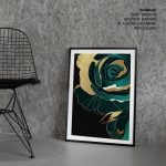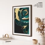 Wall Art | Alluring dark green and gold abstract rose #101 | Small to XXXL Sizes • 50+ Framing Styles • Non Toxic