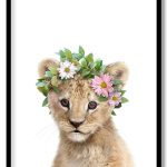 Animals with flower crown, Lion print from Girls nursery decor, Baby girl gift, Baby animal prints, Unique baby gift, Boho