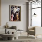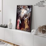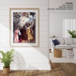 - Material: You can choose between different print mediums (Glicee paper or Canvas) and 40+ framing options that you can see on the website. Any order above 18x24 inches is processed in pinewood since synthetic wood is not able to bear its load. Wherever applicable, acrylic glass is used instead of normal glass, for its ease of handling and recyclability.
