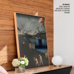 - Material: You can choose between different print mediums (Glicee paper or Canvas) and 40+ framing options that you can see on the website. Any order above 18x24 inches is processed in pinewood since synthetic wood is not able to bear its load. Wherever applicable, acrylic glass is used instead of normal glass, for its ease of handling and recyclability.