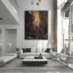 - Material: You can choose between different print mediums (Glicee paper or Canvas) and 40+ framing options that you can see on the website. Any order above 18x24 inches is processed in pinewood since synthetic wood is not able to bear its load. Wherever applicable, acrylic glass is used instead of normal glass, for its ease of handling and recyclability.