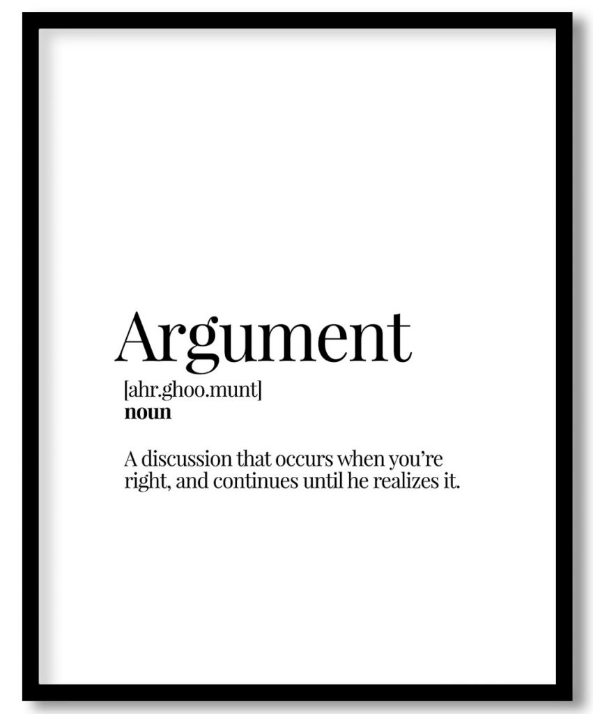 Wall Decor | Argument - Funny Dictionary Definition - Family series - Wall Decor, Framed Art for girl's room, women, wife - Choose size & custom frame color | Custom Size & Frame • Ready to Hang • Made in India • Eco-Friendly