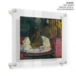 - Material: You can choose between different print mediums (Glicee paper or Canvas) and 40+ framing options that you can see on the website. Any order above 18x24 inches is processed in pinewood since synthetic wood is not able to bear its load. Wherever applicable, acrylic glass is used instead of normal glass, for its ease of handling and recyclability.