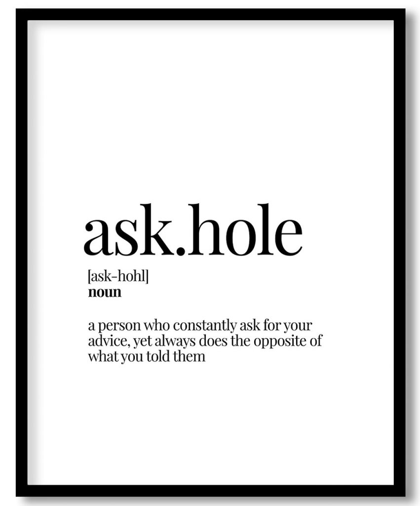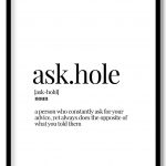 Wall Decor | Ask.hole - Funny Dictionary Definition - Witty series - Wall Decor, Framed Art for cafe, restaurant, bar - Choose size & custom frame color | Custom Size & Frame • Ready to Hang • Made in India • Eco-Friendly
