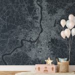 Kolkata Map Wall Mural - Asphalt blue, Mural Wallpaper, PVC Free, Non-Toxic