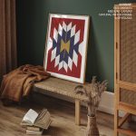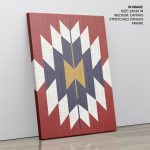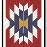 Aztec Print, Western Art Decor, Mexican Rug, Mexico, Tribal, Red Blue White Gold Wall Art, framed art,